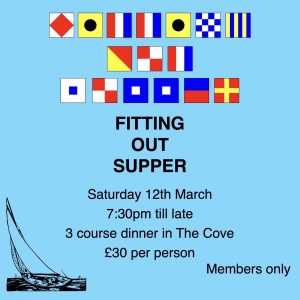 The first of the 2022 Club dinners for members is the Fitting Out Supper on Saturday 12th March. The cost per person is £30 and the wonderful 3 course meal.